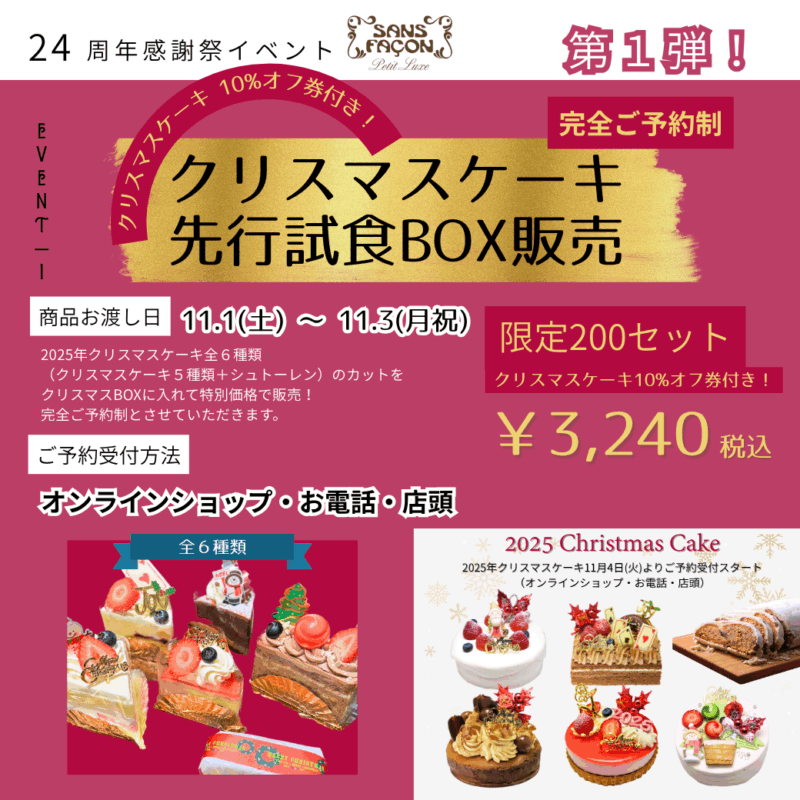 第1弾!24周年感謝祭イベント\完全ご予約制・限定200セット/ 🎂 クリスマスケーキ先行試食BOX販売