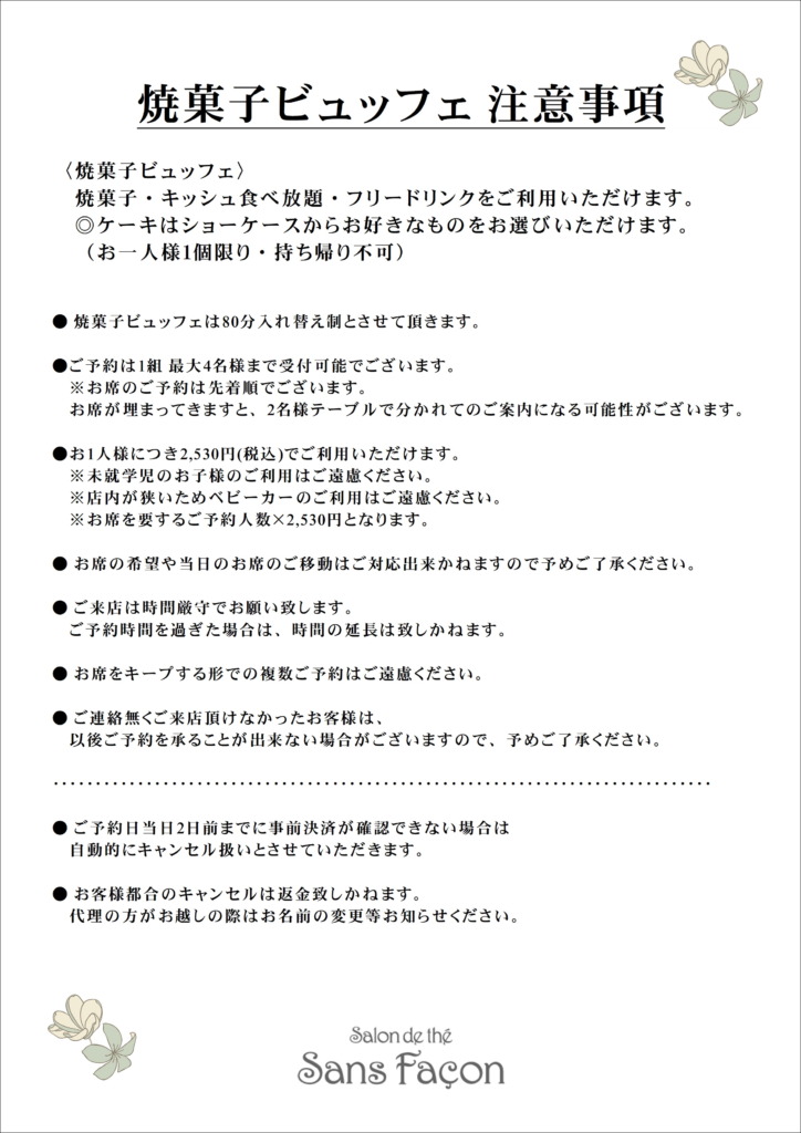 ビュッフェ詳細は下部の〈焼菓子ビュッフェ注意事項〉をご確認ください。