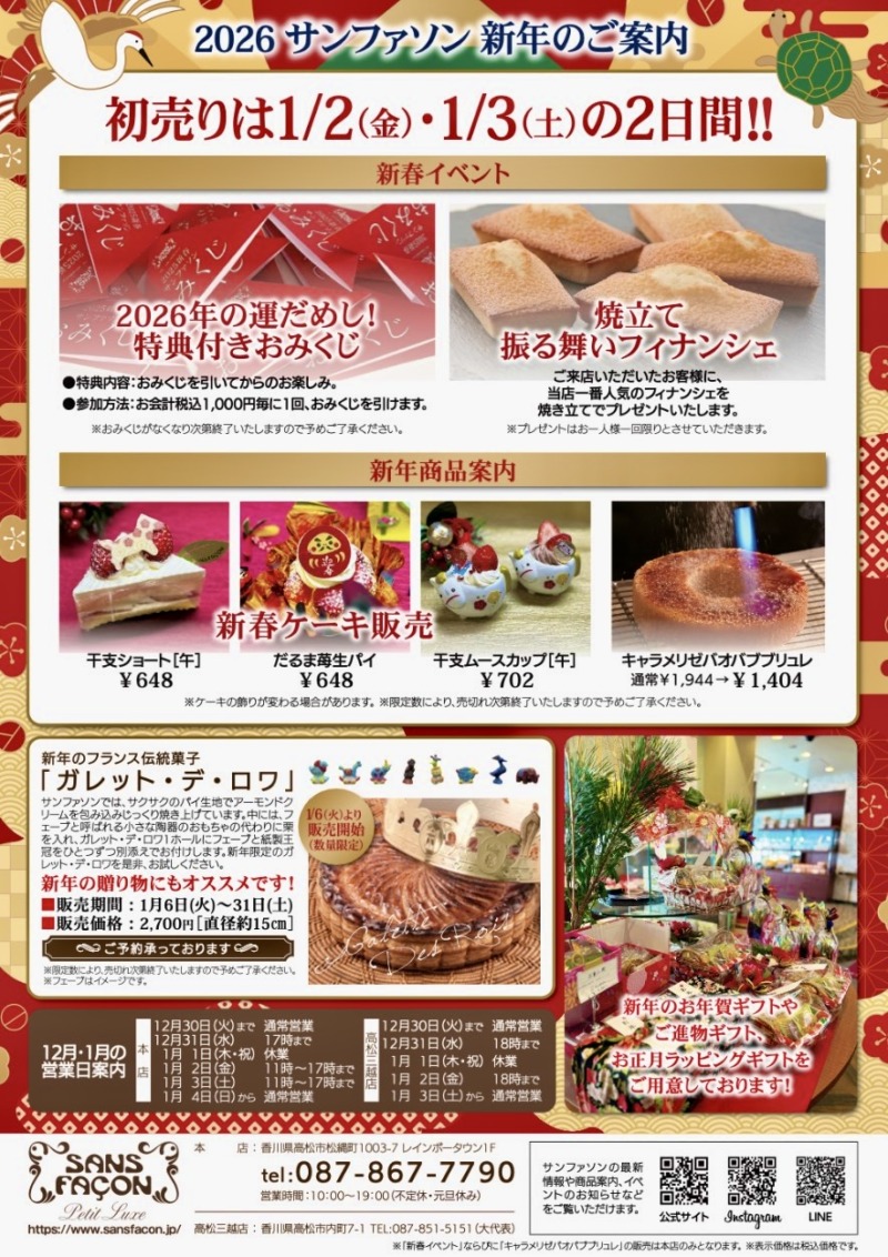 🎍✨2026 サンファソン 新年のご案内✨🎍初売りは 1/2(金)・1/3(土) の2日間!!
