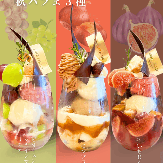 🍂秋のパフェ 3種 10/7(火)からスタート!(イートイン限定)