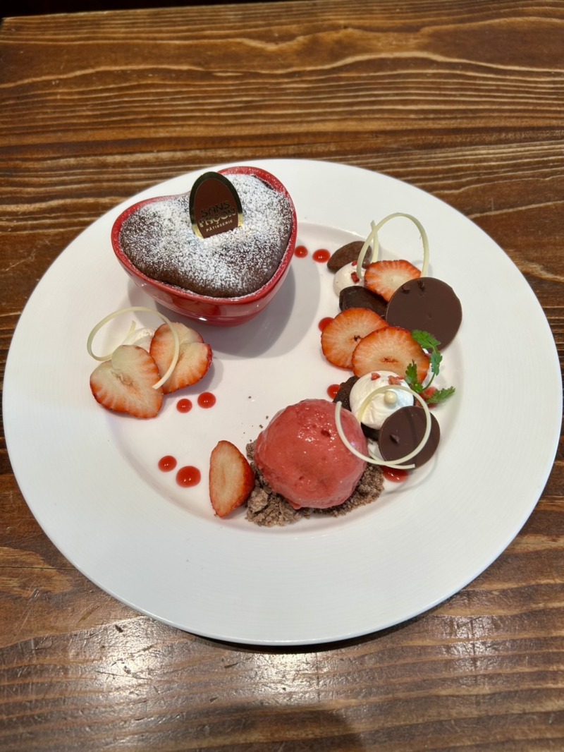 とろ〜り温かいフォンダンショコラがメインのデザートプレート。